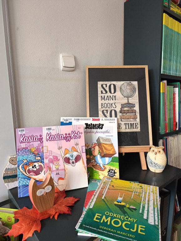 W ramach dofinansowania zostaną zakupione nowe książki - nowości wydawnicze, książki popularnonaukowe, historyczne, komiksy, najnowsze lektury itd. Do utworzenia listy zakupów przystąpili uczniowie, nauczyciele, rodzice :) Dużą inspiracją były odwiedziny w Oddziale dla Dzieci Młodzieży w Powiatowej i Miejskiej Bibliotece Publicznej i konsultacje przeprowadzone z jego pracownikami.